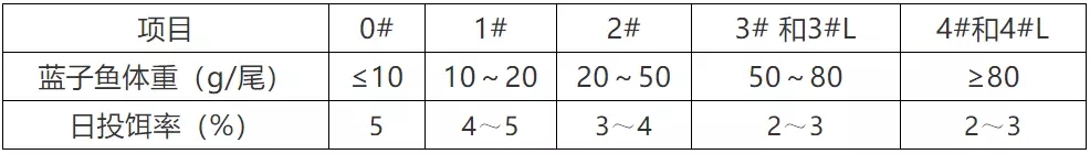 ? 根據存池魚苗規格、數量及天氣、水溫、水質、藍子魚攝食及健康狀況等予以適當調整。