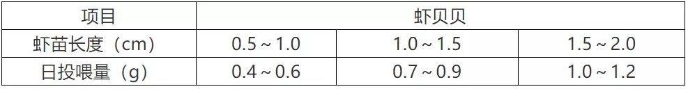 3、本表投喂量根據(jù)天氣、水溫、水質(zhì)、蝦苗健康狀況及攝食情況來(lái)調(diào)整。